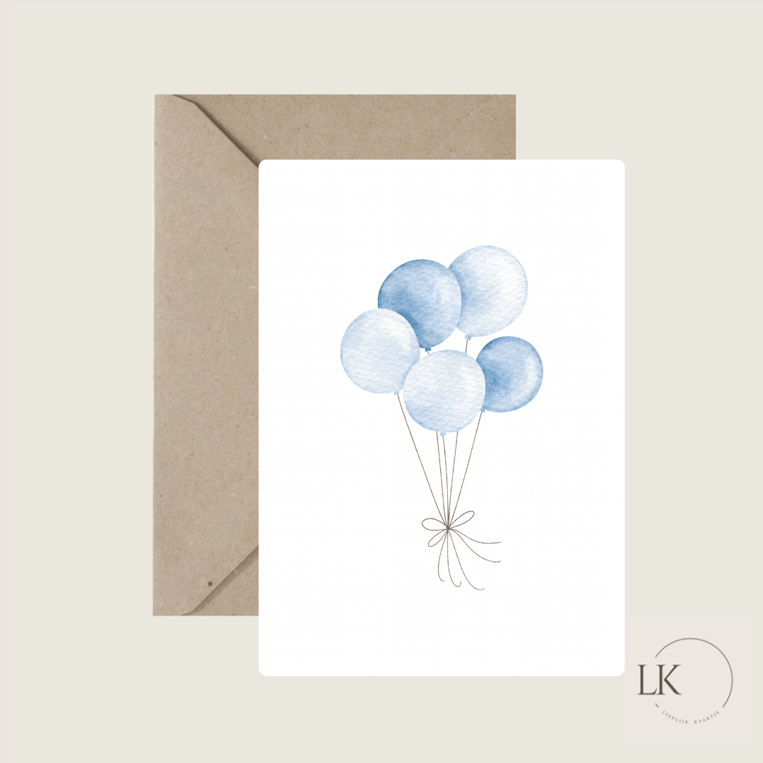 Wenskaart 'blauwe balonnen'